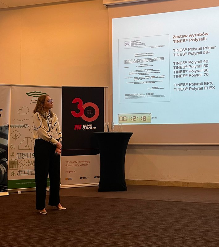 Eksperci TINES – Magdalena Bodzoń i Michał Rybacki – przedstawili podczas konferencji prelekcję pt. „Elastomery polimerowe TINES w konstrukcjach nawierzchni torowisk tramwajowych”, w której szczegółowo omówili zalety i potencjał serii TINES® Polyrail. Produkty są odpowiedzią na rosnące potrzeby w zakresie tłumienia drgań i hałasu, ochrony przed działaniem wody, środków chemicznych i prądów błądzących, a także zapewnienia wysokiej trwałości eksploatacyjnej nawierzchni.