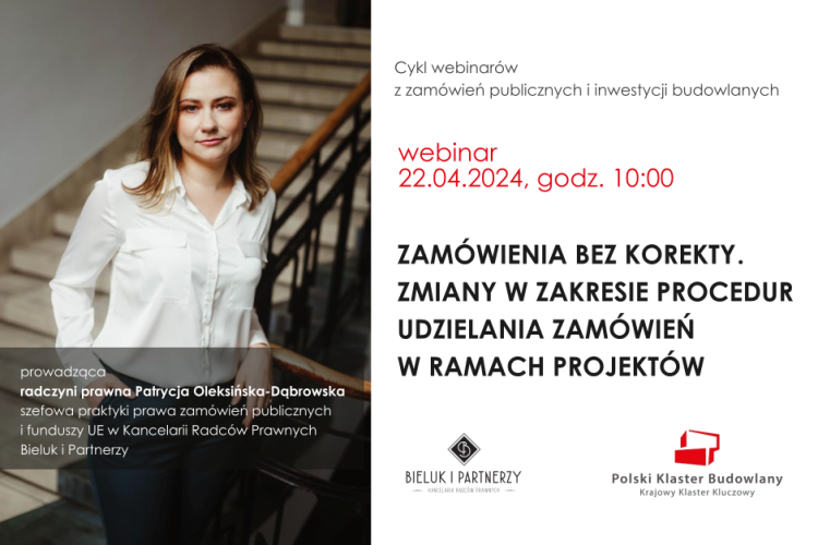 Webinar „Zamówienia bez korekty. Zmiany w zakresie procedur udzielania zamówień w ramach projektów”.