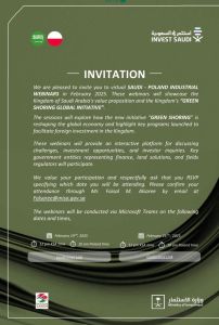 Szanowni Państwo, w dniach 19 i 26 lutego br. saudyjskie Ministerstwo Inwestycji we współpracy z Ambasadą RP w Rijadzie organizuje polsko-saudyjskie webinarium biznesowe, które pozwoli zapoznać się z możliwościami współpracy z saudyjskimi firmami i instytucjami państwowymi.   Dołączamy zaproszenie wystosowane do polskich przedsiębiorców i zachęcamy do udziału w tym wydarzeniu. W razie jakichkolwiek pytań proszę […]
